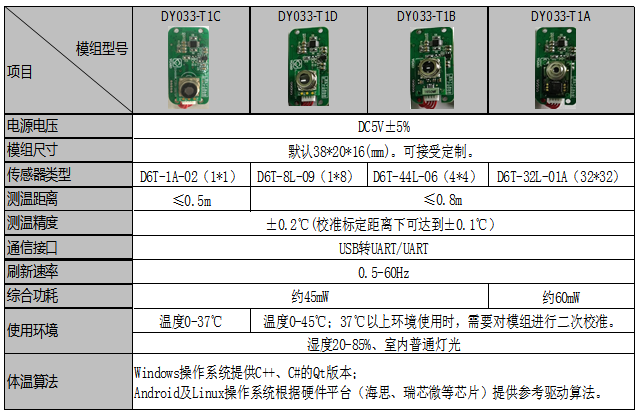 歐姆龍測溫模組是基于歐姆龍紅外高精度溫度傳感器以及先進軟件算法的非接觸式測溫模組,款式多樣,有單點測溫型,陣列測溫型,以及熱成像測溫型等等,通過算法可實現測溫精度±0.2℃,具備數據實時輸出顯示,可通過USB接口直接連接電腦和手機,配合上位機軟件或者手機APP程序,使用十分方便。