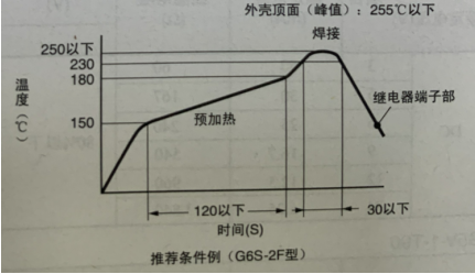 焊接推薦條件雖然顯示出了印刷電路板面的溫度曲線,但是各繼電器的條件可能會(huì)有所不同,因此請(qǐng)?jiān)趯?duì)各規(guī)格加以確認(rèn)的基礎(chǔ)上進(jìn)行使用,在焊接之后,請(qǐng)勿立即浸漬到清洗液等冷卻液中,會(huì)損傷繼電器的密封性,如下圖所示: