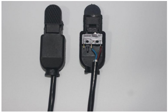 據以上氬弧焊焊槍實體圖可以看出,在焊槍的把手柄處有一個開關來作為槍體氣體的燃燒開關。我們可以看下在手柄處的開關結構件如下圖: