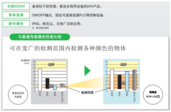 歐姆龍限定反射傳感器,不易受顏色和材質(zhì)影響的限定反射型鏡面、黑色、透明物體也都會檢測出來,支持DC24V的設(shè)備內(nèi)置用。不受背景及物體的顏色影響,切實(shí)檢測希望檢測的物體。
