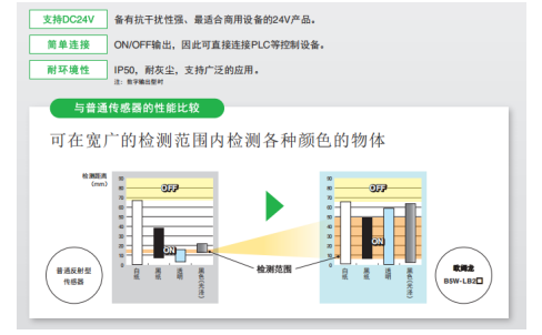 其中一個環節少不了歐姆龍B5W-LB2112-1的助力,那就是包裝袋有無檢測,當包裝袋用完時輸出報警信號。由于食品包裝袋的顏色和花紋變化多樣,有紅色、黑色或者透明的,普通的光電傳感器對黑色和透明材質的包裝袋的檢測距離會有很大變化,容易出現誤報,而B5W-LB2112-1,輕松檢測各種顏色的包裝袋,實現無差別、高精度檢測。