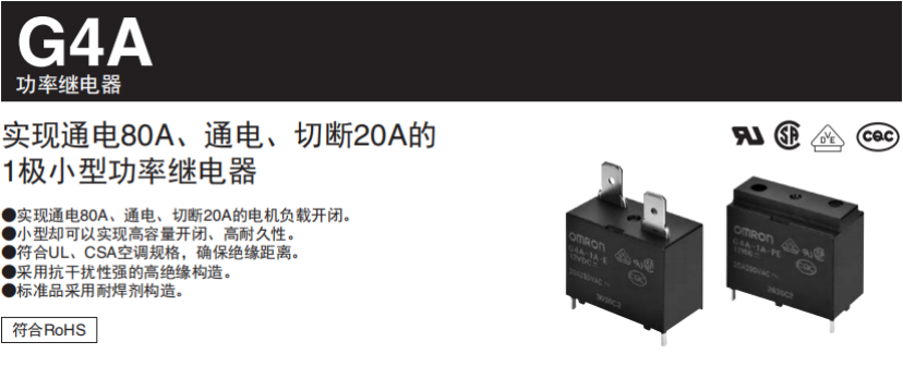 G4A是一款極小型功率繼電器,小型卻可以實現高容量開閉,高耐久性,有接線片端子和印刷基板用端子可選擇,穩定的性能也足夠小尺寸為產品開發預留足夠的空間。