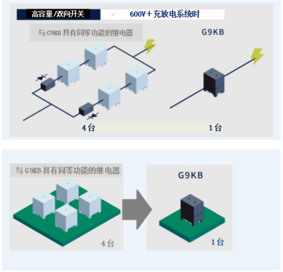 1、支持DC600V50A的高電壓直流繼電器,容量達,可實現雙向開閉;