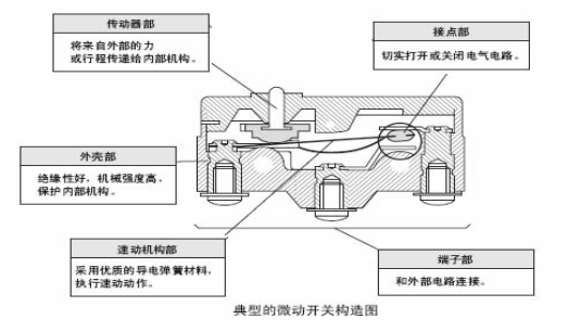 下圖是微動(dòng)開關(guān)組成圖: