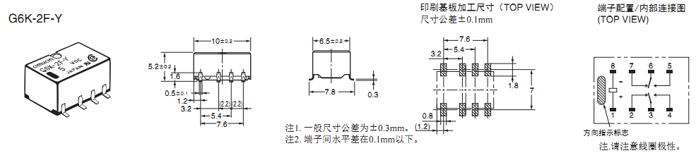 高5.2mm×寬6.5mm×長10mm的超小型,對應(yīng)高密度封裝(G6K(U)-2F(-Y)型)。