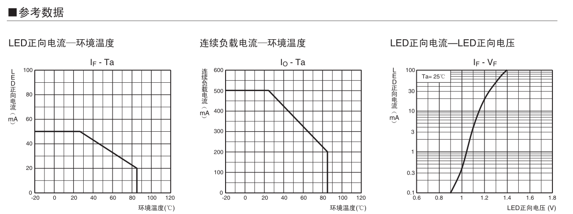 輸出繼電器開路時漏電流在1 μA以下。