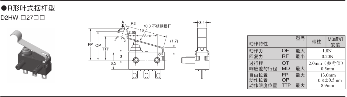 沒有擺桿也同樣使用方便的長行程規(guī)格 (OT參考值 :1.4mm)