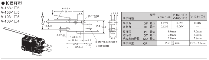 焊接端子(A) | SPDT | 1.27N | V-153-1A6 | --- | V-153-1A6-T | --- |
