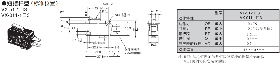 歐姆龍微動開關,VX-011-1A3,歐姆龍微動開關VX
