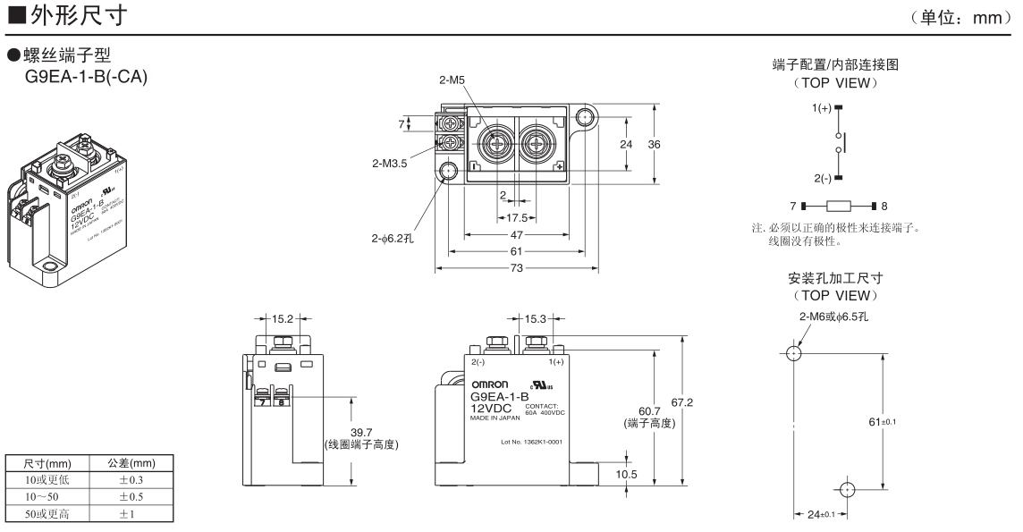 高67.2mm×寬36mm×長(zhǎng)73mm的小型繼電器,可以開關(guān)DC400V 60A。(最大可切斷DC300V 600A)