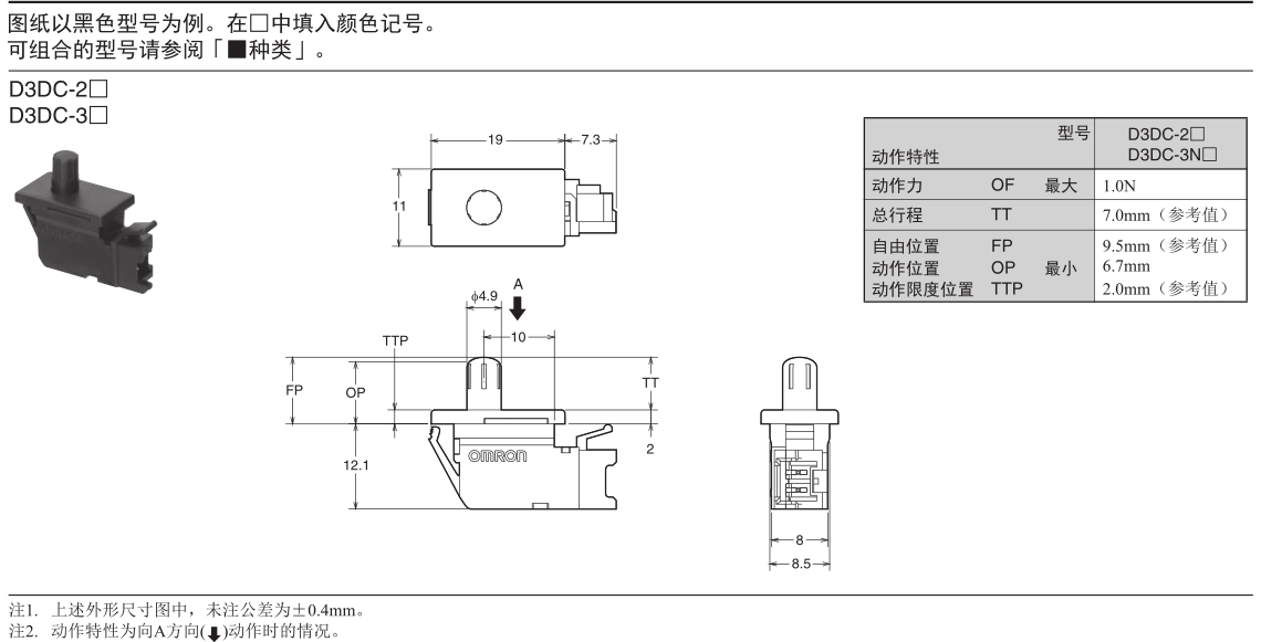 歐姆龍門用/電源開關, D3DC-3N,歐姆龍門用/電源開關D3DC