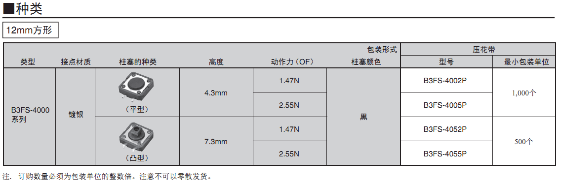 基板表面安裝型,備有6mm方形、壓花帶包裝型