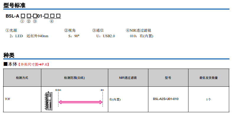 • B5L 3D TOF傳感器模組